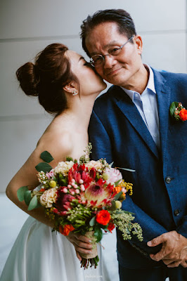 The most memorable incident that I had with Kelly was just right before the wedding solemnisation Walk-in while my dad was about to walk me down the aisle. Kelly said to us 'give me a sweet pose!' Initially we didn't know how to pose as my dad is a very conventional guy and doesn't really show us affection since young. So Kelly said to him, 'Uncle, give your daughter a hug like when you first hugged her when she was born', both our hearts melted and tears were flowing as we just naturally hugged each other for the longest time. And I'm grateful that Kelly captured a beautiful picture of me and my dad which I absolutely love!