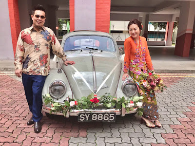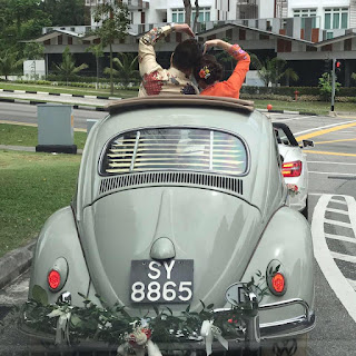 Shu Min also did the decorations for our vintage wedding car rented from Perfect Wedding Car SG. We absolutely love this little vintage Beetle that matches our outfit! We had a wonderful ride with Rizal, the owner of this beauty and our driver for the day! He's such a nice person and is extremely accommodating to the requests of the camera crew. He knows exactly when to drive slowly for the camera and get us safely from point to point.