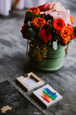 Keeping a wedding intimate also means putting in more effort on handmade wedding favours. With the help of Arterspace Art Studio and some of our talented friends, we hand-painted 140 mini canvases installed with a magnet, each written with our tagline "Love bears all things".
